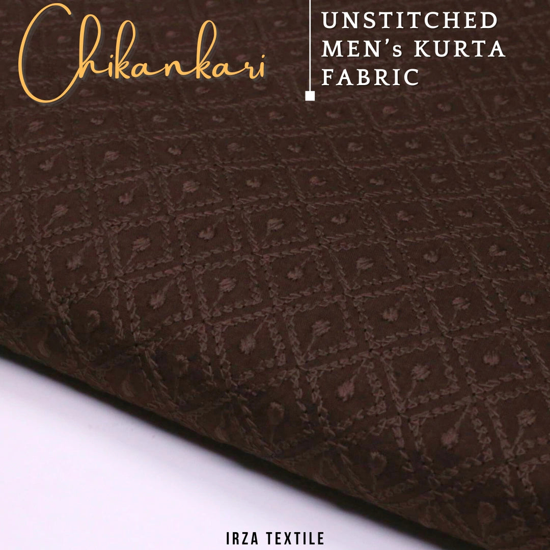 Un-Stitched Embroidered Dark Brown Cotton Kurta GT-9257