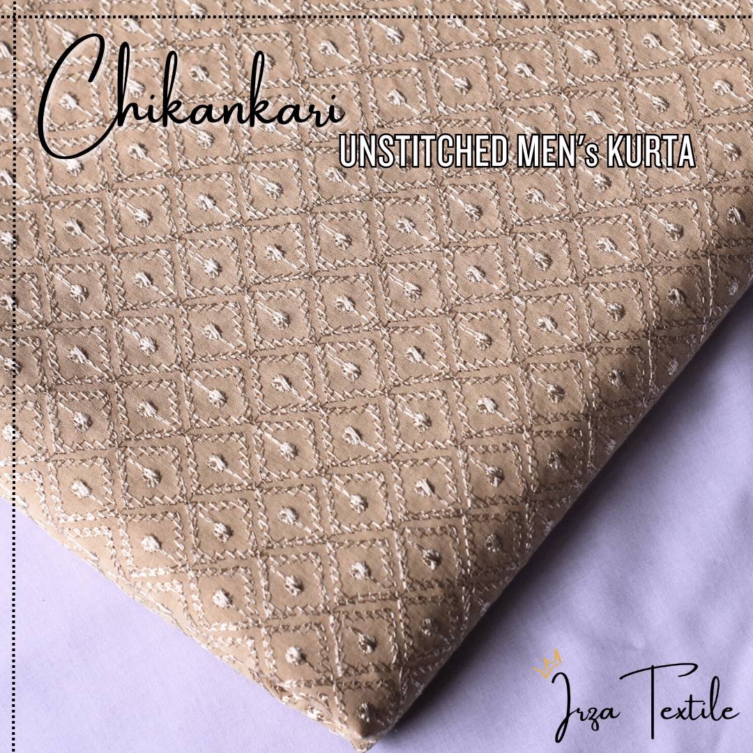 Un-Stitched Embroidered Chikan Khaaki Kurta TP-9870