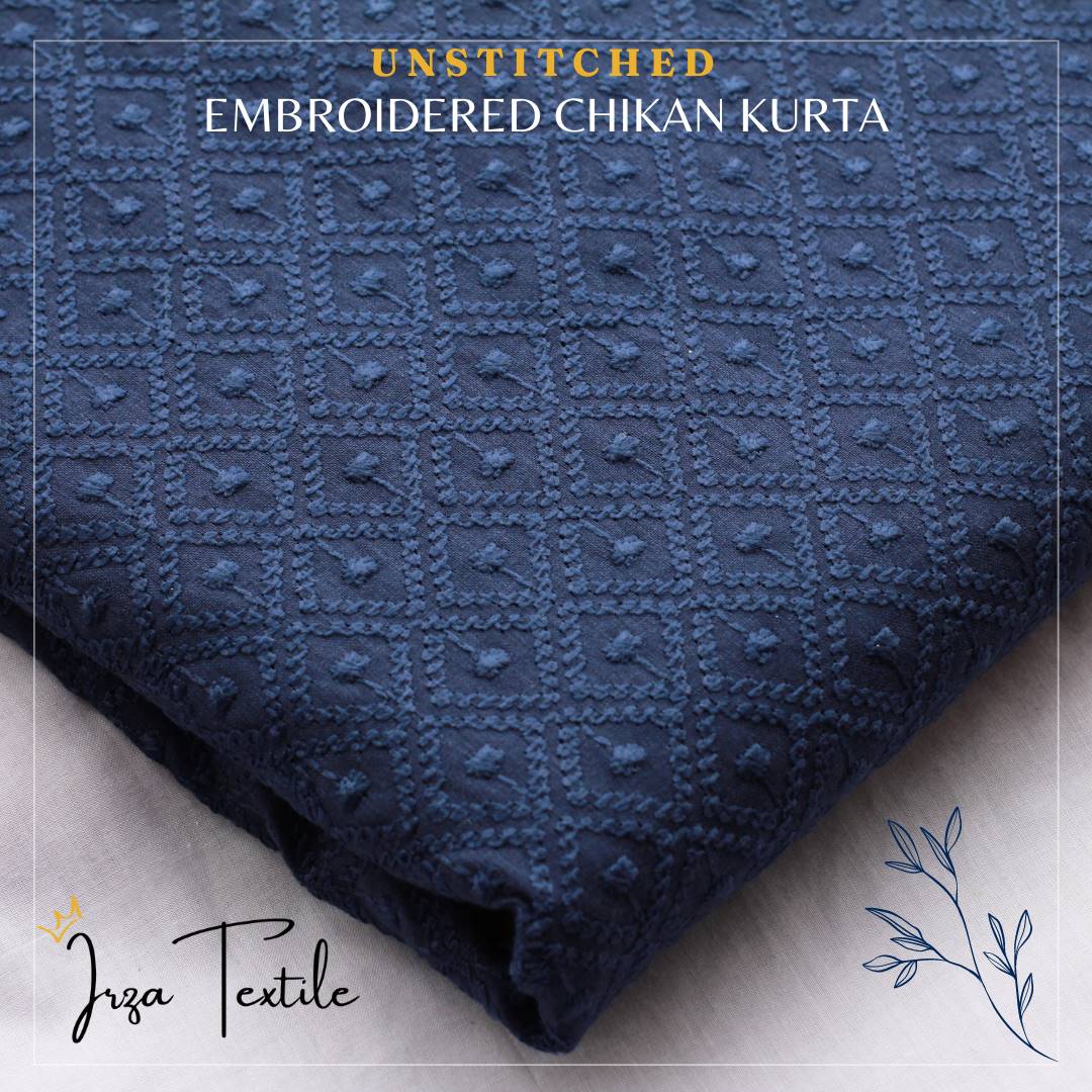 Un-Stitched Embroidered Chikan Navy Blue Kurta TP-110