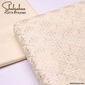 Shahjahan Embroidered Cream Un-Stitched Kurta Pajama