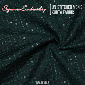 Un-Stitched Cotton Silk Bottle Green Sequence Embroidery Kurta AOB-147