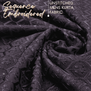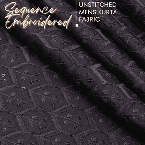Un-Stitched Cotton Silk Charcoal Grey Sequence Embroidery Kurta AOB-118