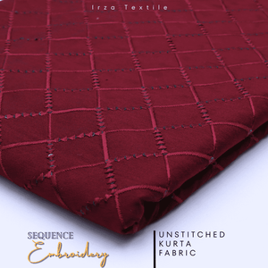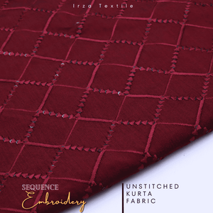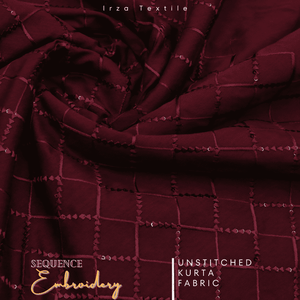 Un-Stitched Cotton Silk Maroon Sequence Embroidery Kurta AOB-112