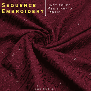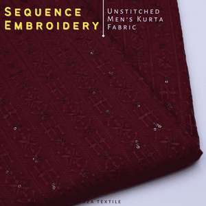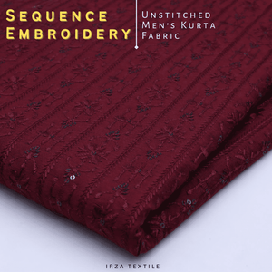 Un-Stitched Cotton Silk Maroon Stripe Sequence Embroidery Kurta AOB-124