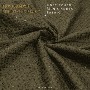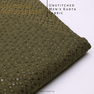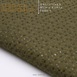 Un-Stitched Cotton Silk Mehandi Green Sequence Embroidery Kurta AOB-132