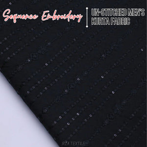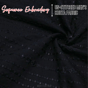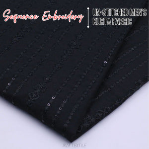 Un-Stitched Cotton Silk Stripes Black Sequence Embroidery Kurta AOB-144