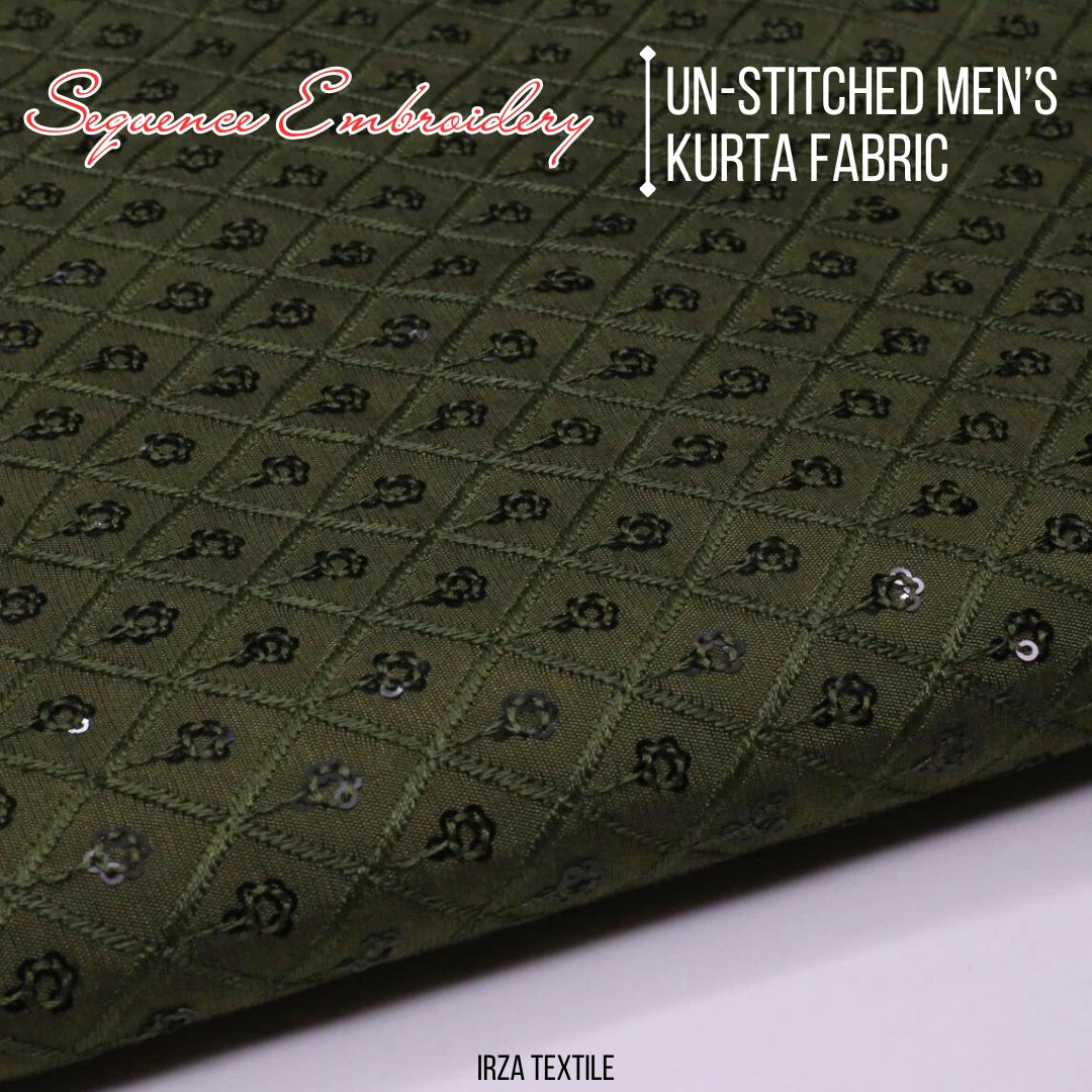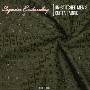 Un-Stitched Cotton Mehandi Green Sequence Embroidery Kurta AB-146