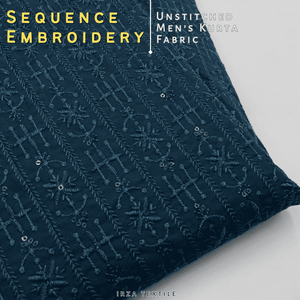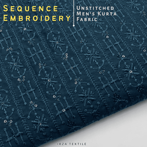Un-Stitched Cotton Silk Zink Blue Stripe Sequence Embroidery Kurta AOB-127
